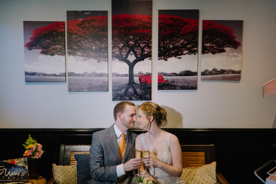 A & D colorful wedding at Nouveau Antique Art Bar